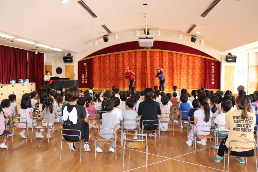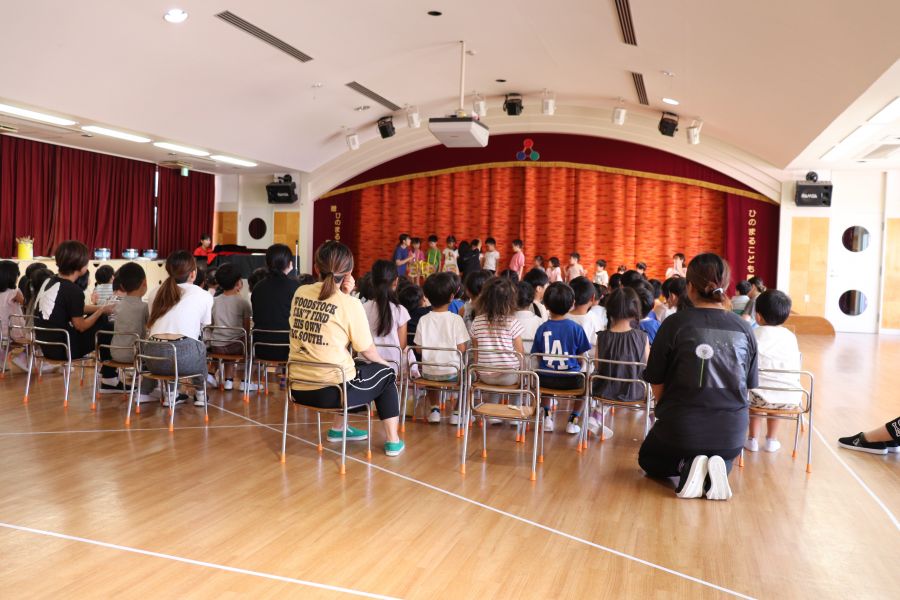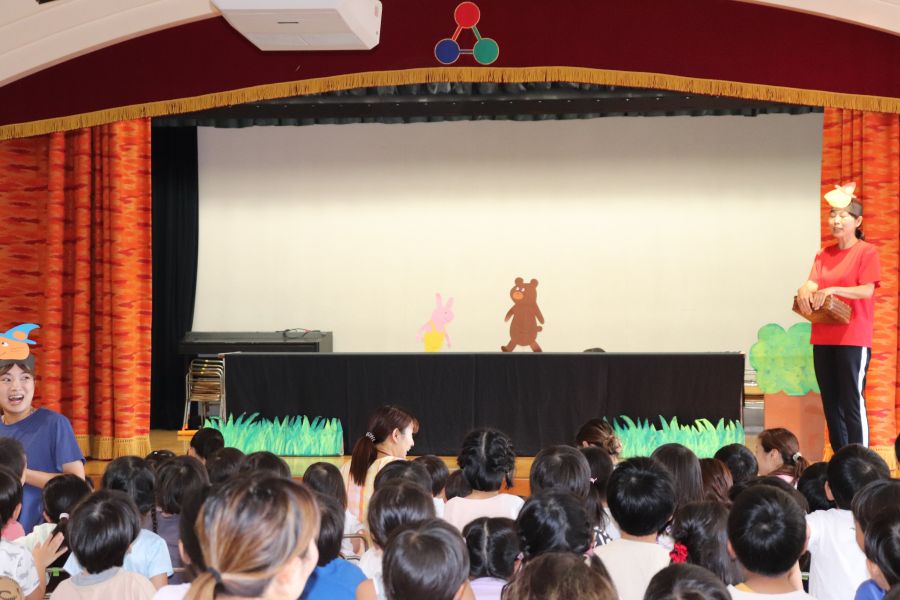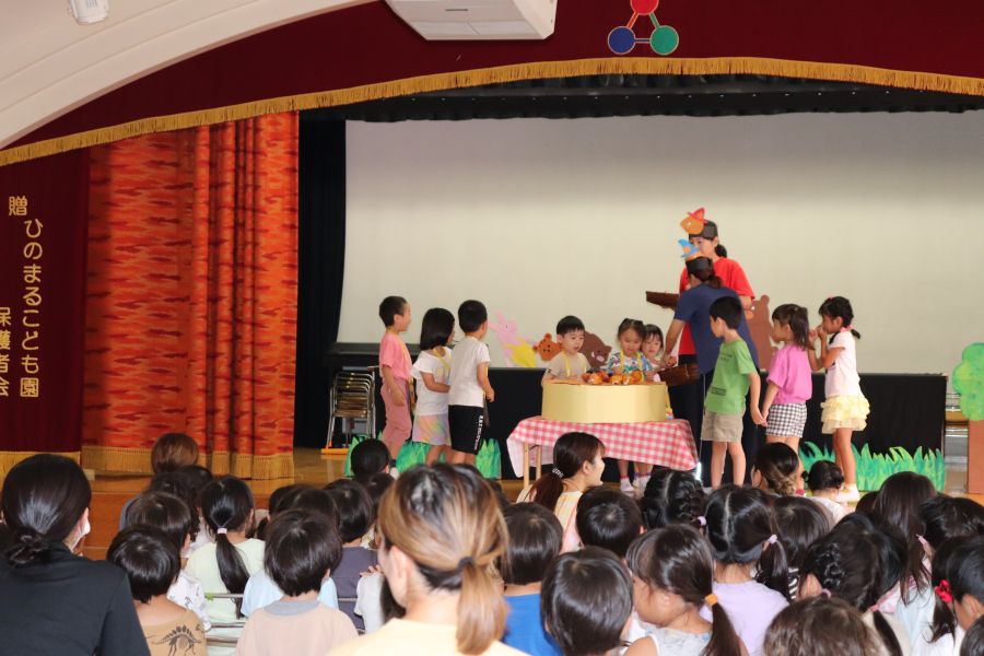 今日は8月生まれのお友だちのお誕生日会がありました☆彡 お誕生日カードをもらったあとは、インタビューに答えたり、お歌のプレゼントもありましたよ♪ その後は先生たちからの出し物で、ぐりとぐらの劇をみんなでみました。 誕生児のお友だちも劇の中で出てくるケーキ作りに参加し、楽しんでいましたよ♪