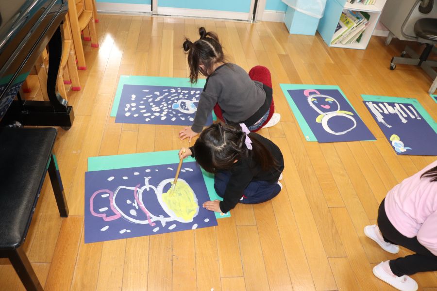 各クラス、絵を描いたり、先生たちの手作りおもちゃで遊んだりと