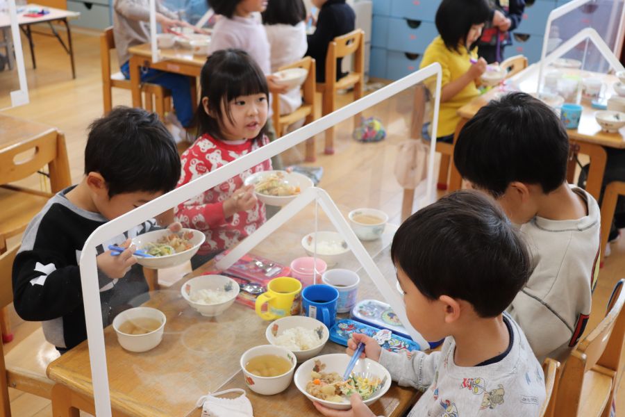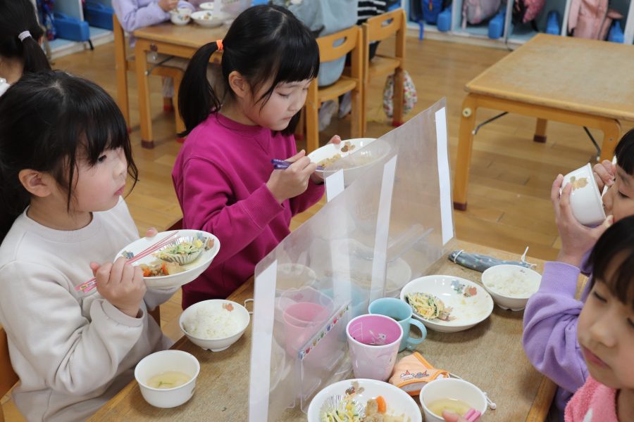 今日は朝から雨が降っていて、とても寒い日でしたが 子どもたちは温かくておいしい給食をニコニコ笑顔でたくさん食べていましたよ♪ 今日の献立は、ごはん、豚バラ大根、スパサラダ、すまし汁です。